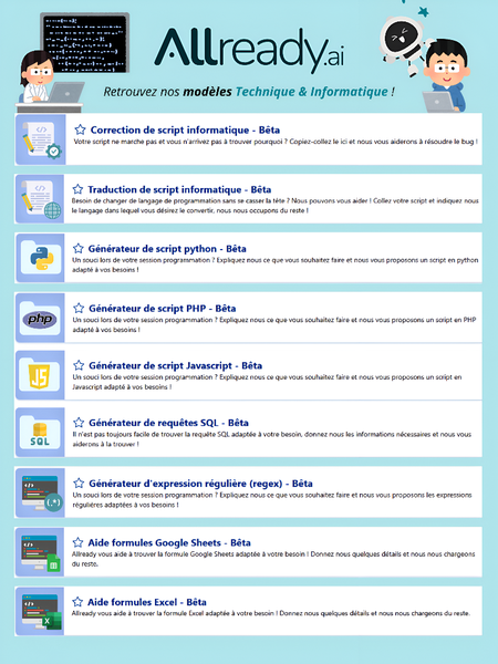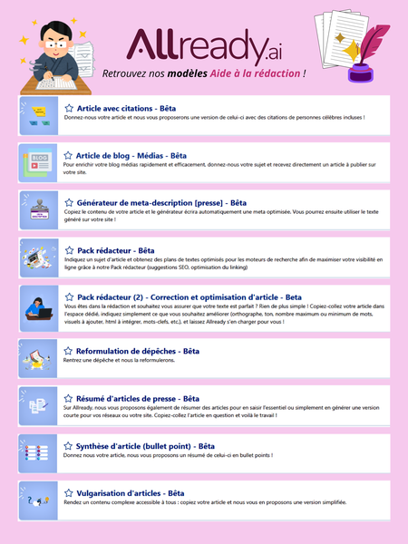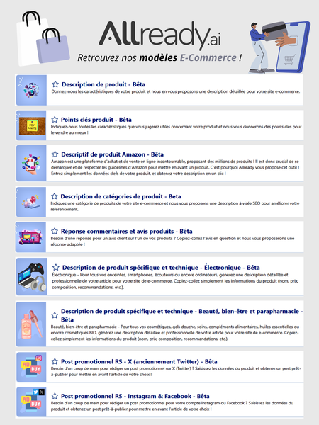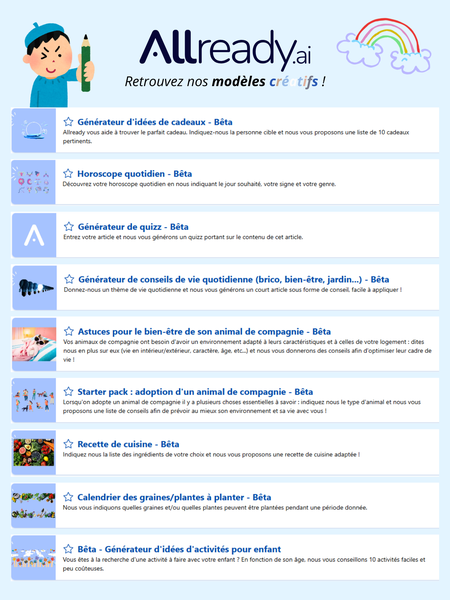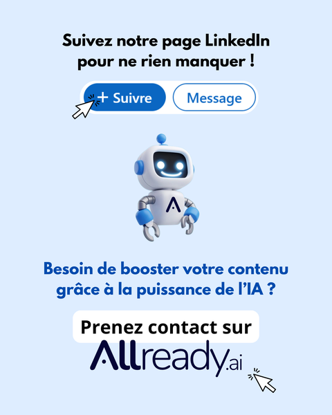Ici se trouvent les visuels réalisés pour de la communication externe tels que des infographies explicatives sur des modèles IA (notamment Allready), supports de salons professionnels, et visuels clés mettant en valeur des chiffres clés. Des supports pensés pour rendre l’IA accessible, lisible et impactante ! 🚀💪🏻